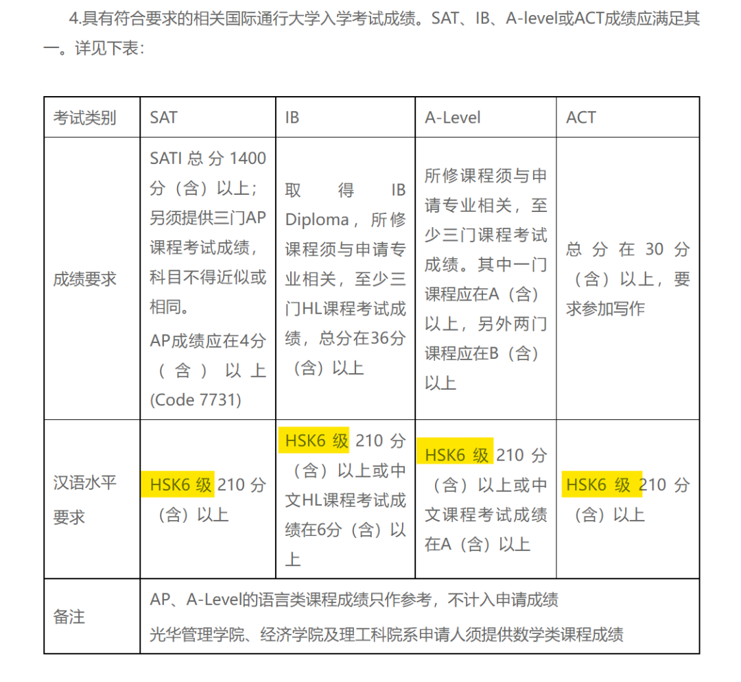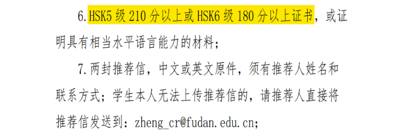其他如复旦大学,语言要求HSK5级达到210分或6级达到180分: